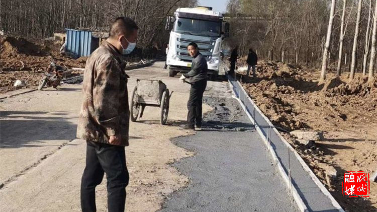 ★11月17日,微子镇相关负责人在东靳村查看道路施工进度。