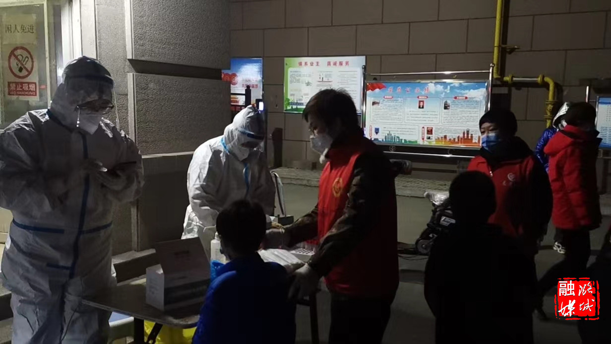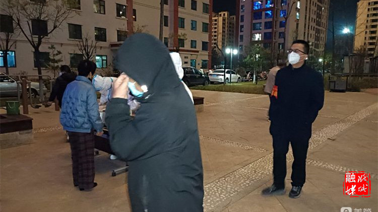 ▲区教育局负责人带队在包联小区水岸春城,督导核酸采集工作。