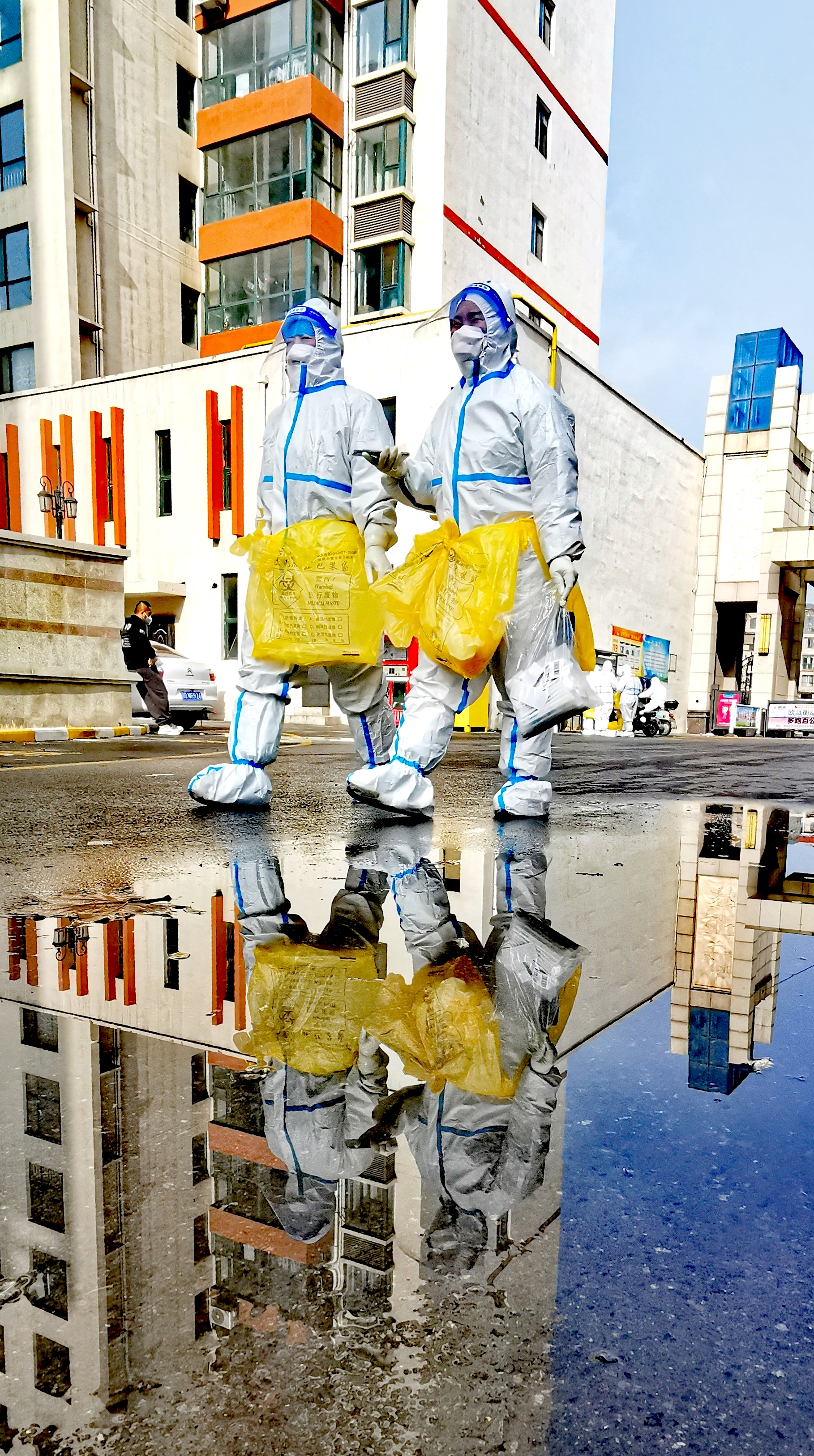 ▲区融媒体中心工作人员在包联小区开展疫情防控志愿服务,党员干部积极参与居住地小区志愿服务。
