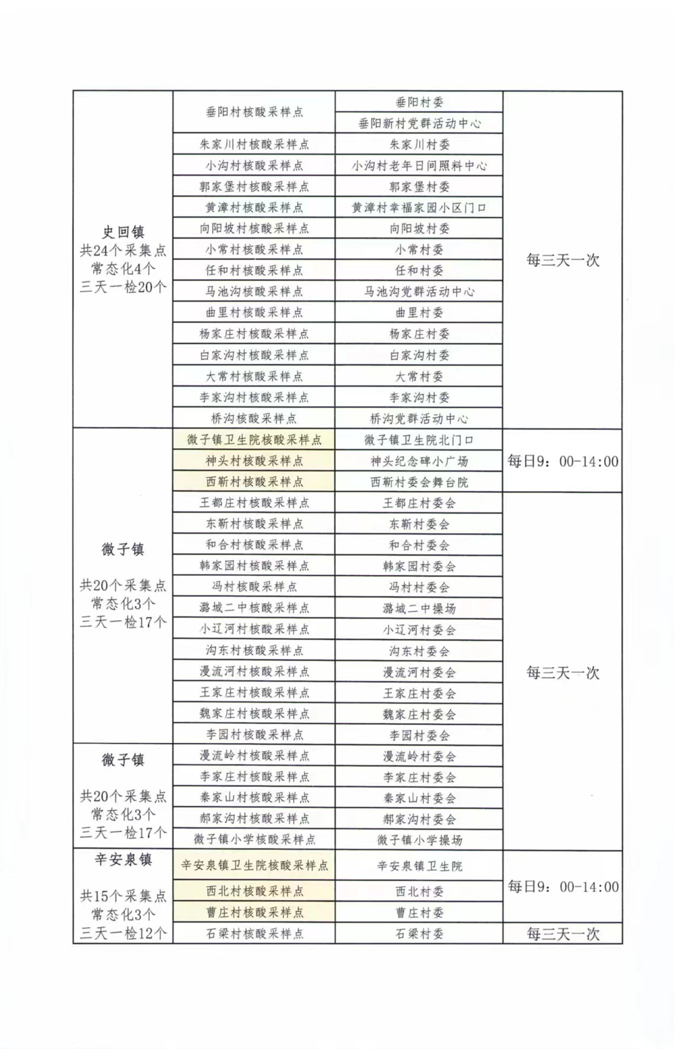 3.潞华街道北片及其他7个乡镇(街道)开放141个常态化核酸采样点位。其中,34个点位每日开放(开放时间为9:00-14:00,免费检测),107个点位每三天开放一次(开放时间为9:00-14:00,免费检测)。