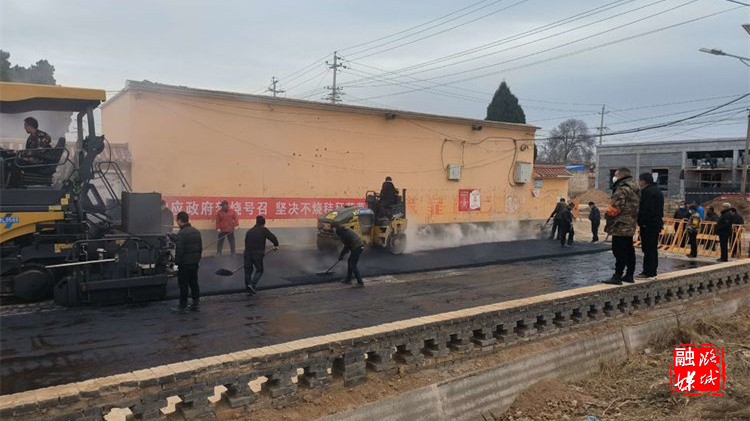 ★11月29日,微子镇工作人员在东靳村查看进村路铺油情况。