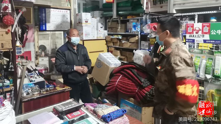 ▲微子镇相关负责人在微子村沿街商铺督查疫情防控工作。