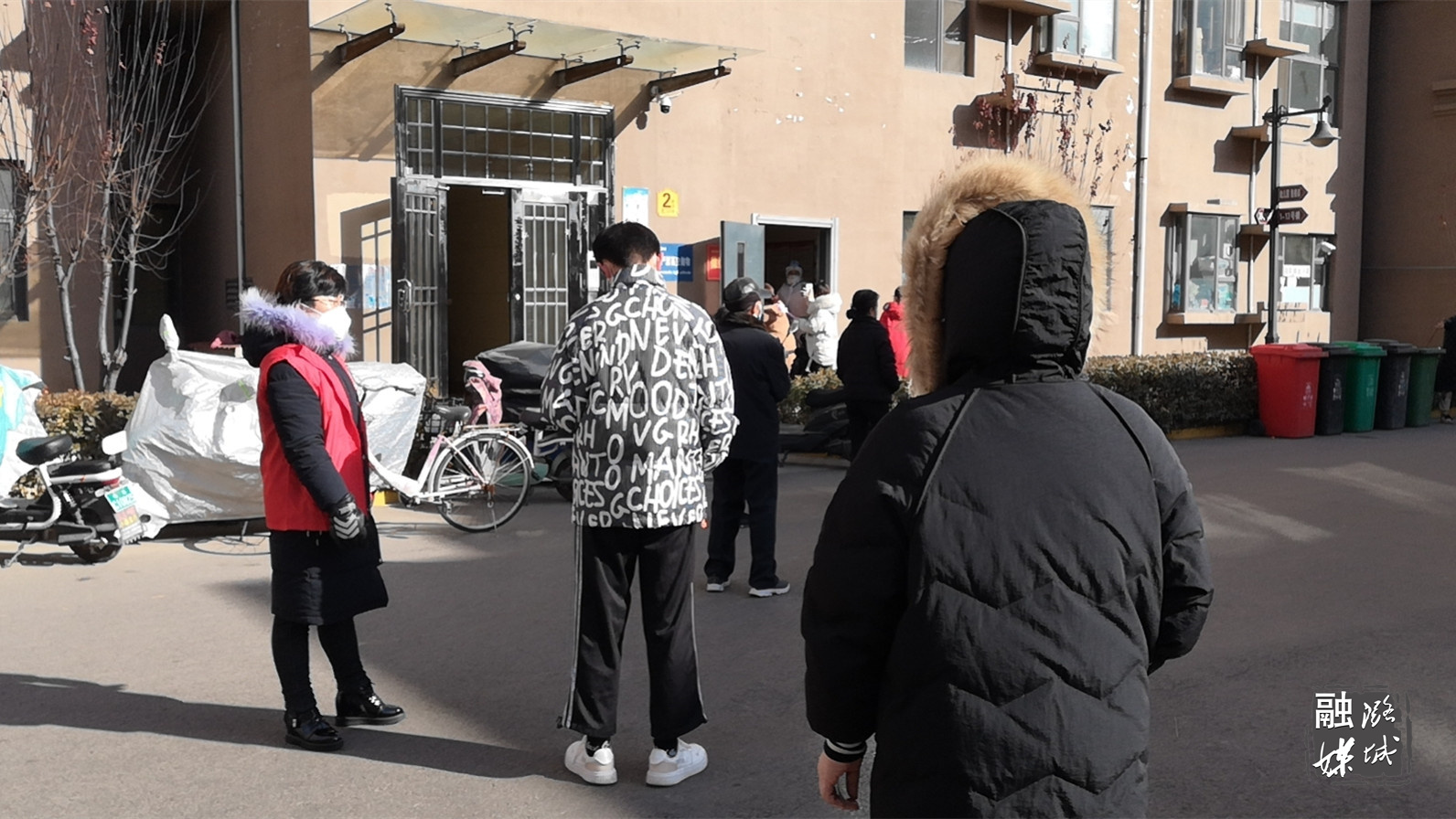 ▲区融媒体中心工作人员在包联小区开展全员核酸筛查志愿服务。