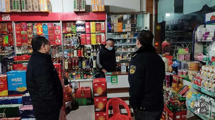 ▲成家川街道相关负责人在成家川村沿线商铺督查疫情防控工作落实情况。