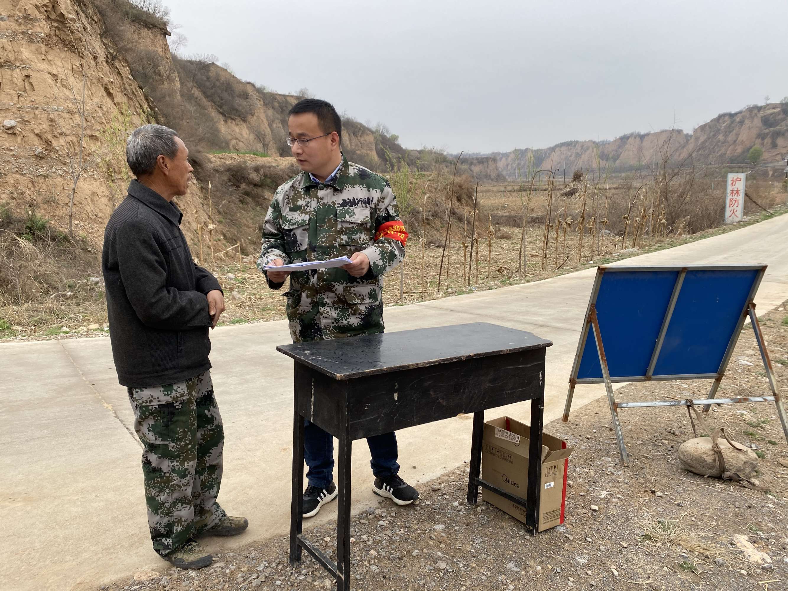 ▲4月2日,黄牛蹄乡负责人到南花辿村、辛安村查看指导护林防火卡口、瞭望哨值班值守情况。