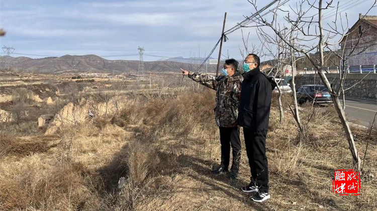 ▲辛安泉镇相关负责人在曹庄村实地查看林缘秸秆清理情况,并就森林防火工作进行督查。