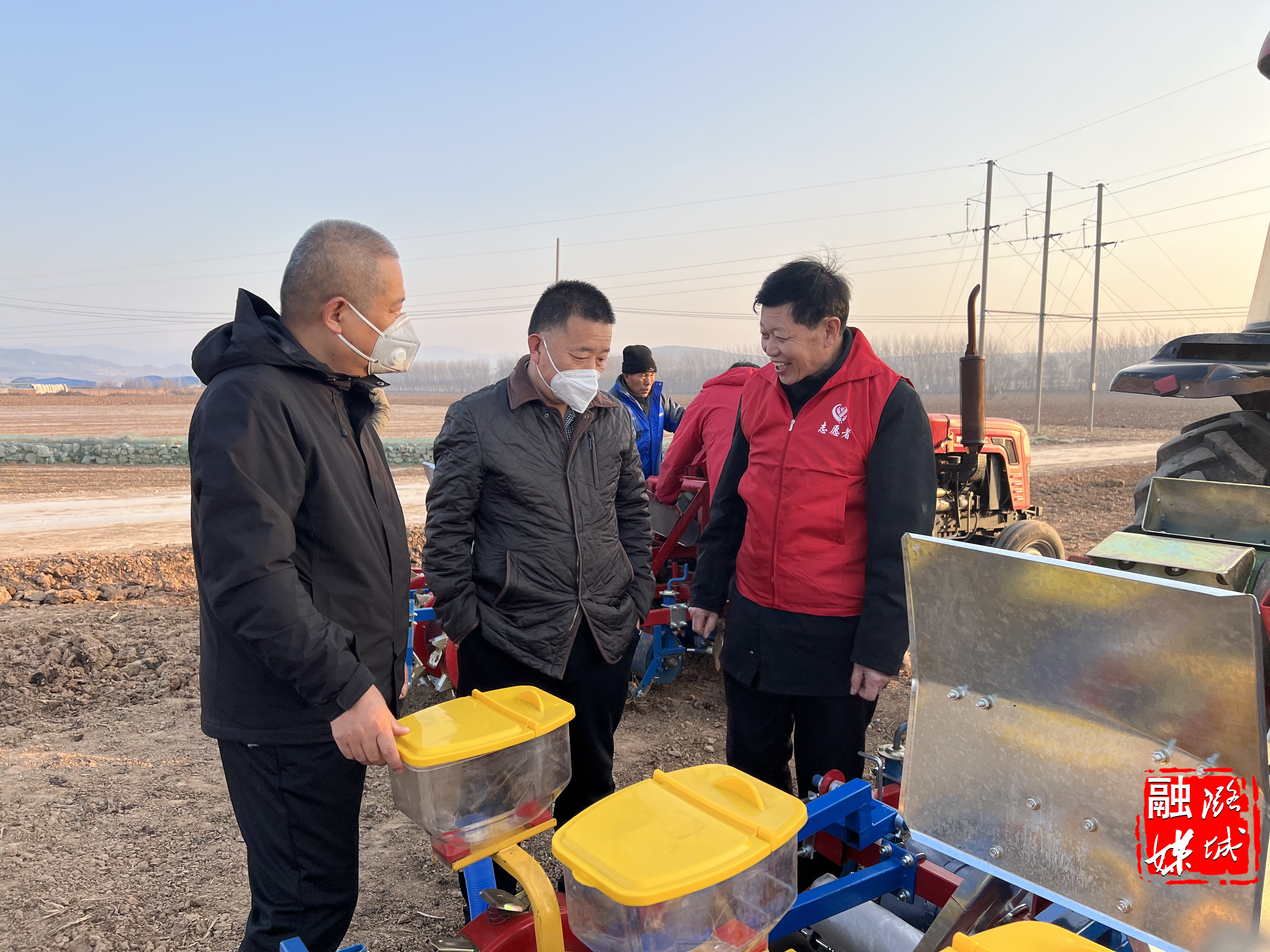 农田里,农业专家贾双龙在认真指导农机调试,精确控制播种、施肥的间距和深度,减少籽种浪费,提高肥料利用率,确保播种质量。冬播使用的全生物降解渗水地膜具有透气和渗水的功能,能够做到秋水冬储、秋水春用,可以有效缓解春季土地干旱,致使种子无法发芽的问题。它能使谷种保持在湿润的土壤环境中,让冬播谷顺利完成生理生化反应,提高成活率。