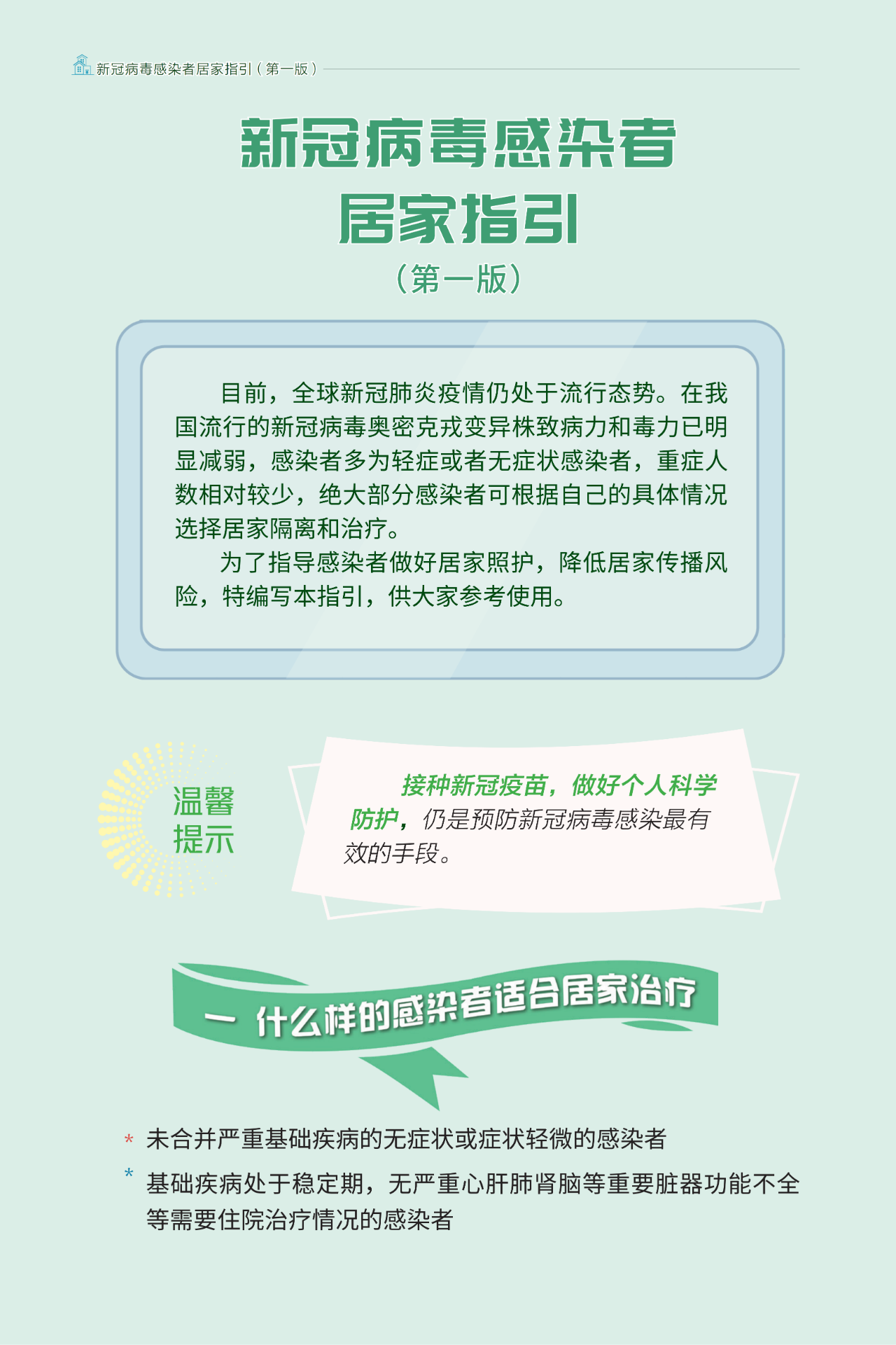 为了指导新冠病毒感染者做好居家照护,降低居家传播风险,依据国务院联防联控机制综合组印发的《新冠病毒感染者居家治疗指南》(联防联控机制综发〔2022〕117号),由国家卫生健康委宣传司策划、中国健康教育中心编写制作本指引,供大家参考使用。