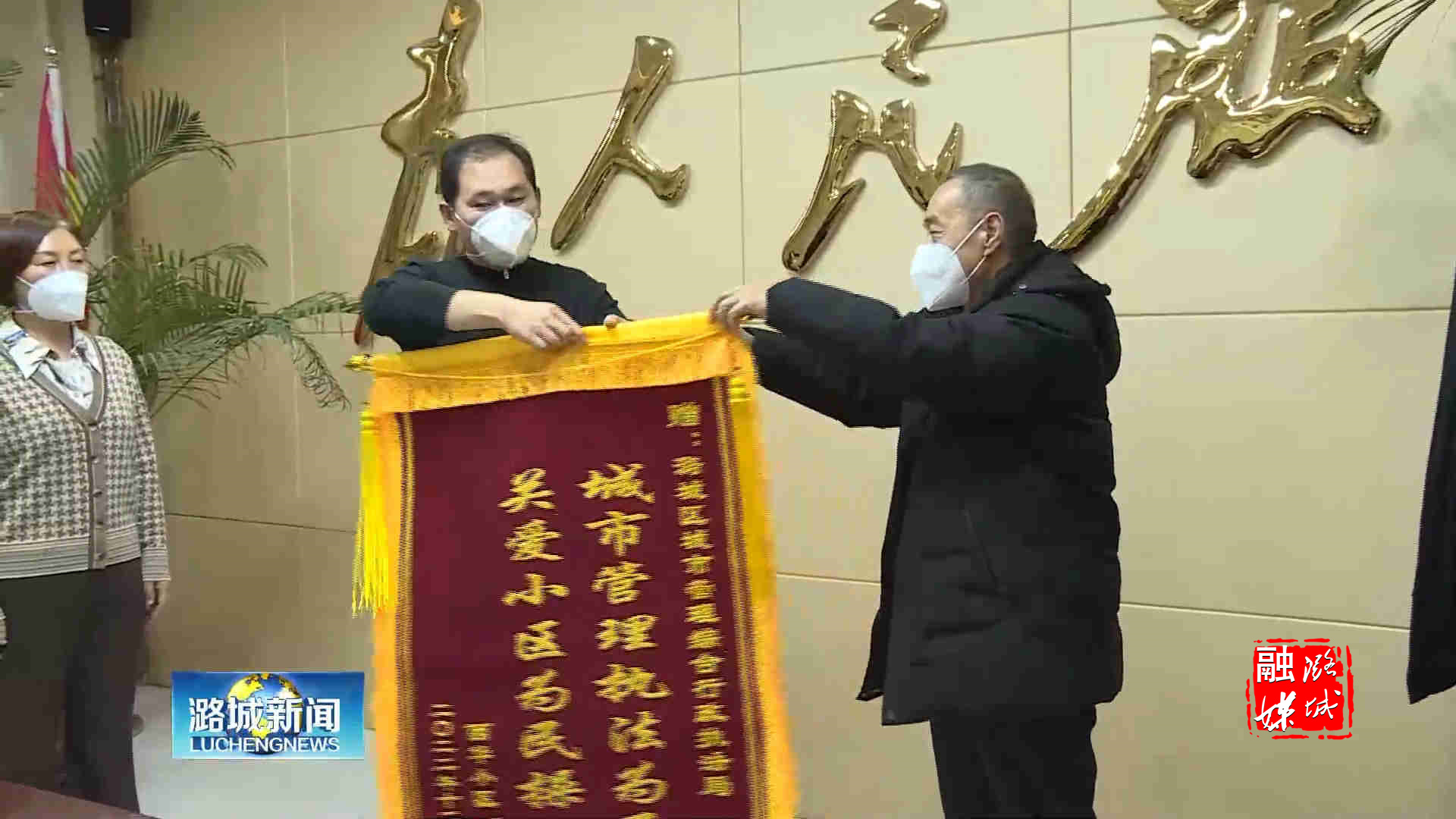 12月12日傍晚,西华小区党支部书记、业委会主任成建东一行人带着一面写有“城市管理执法为民 关爱小区为民操心”的锦旗,来到了区城市管理综合行政执法局。
