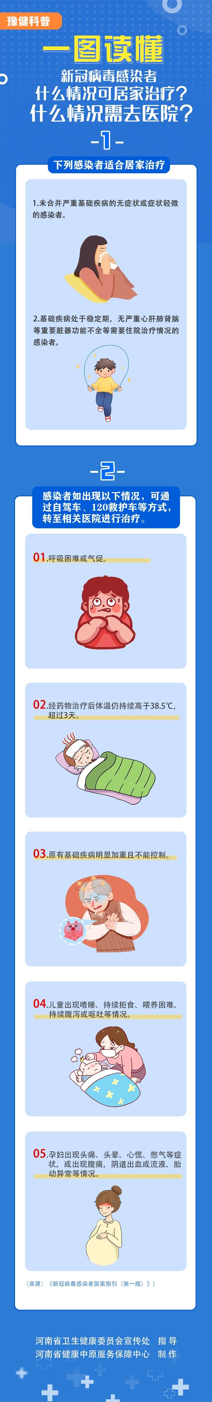 【新冠肺炎科普知识】(二七三)新冠病毒感染者什么情况可以居家治疗?什么情况需要去医院?一图读懂