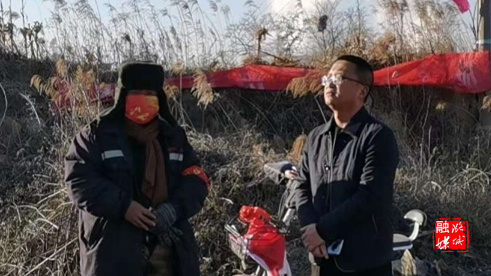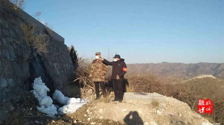 ★12月23日,黄牛蹄乡工作人员到潦河村查看水库出水口出水情况。