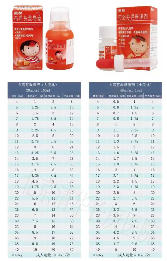 两者均抑制环氧酶而减少前列腺素的产生起到退热作用,退热效果相似,给药剂量适当时不良反应均少,选择其一即可。不建议两药联合或交替使用,因有可能导致剂量错误或混淆给药间隔时间,导致药物过量或中毒。发烧本身不是疾病,而是一个症状,本质是新冠病毒、流感病毒、普通病毒、细菌、支原体等感染所致。口服退烧药物主要是减轻发热所致的不适,而非单纯地恢复体温,更不治疗疾病。建议≥2月龄儿童腋温≥38.2℃或伴有明显不适时,可口服退热药物。在疾病急性期口服退热药物体温降不下来或者降下来4—6小时后再次发热都可为正常现象,如孩子精神反应尚可,我们需要多观察,多做物理降温,间隔4—6小时口服退热剂。问题五:退热剂与含退热剂的复方感冒药可以同时使用吗?应避免同时使用。复方感冒药中大多包含对乙酰氨基酚,与退热剂同时服用可造成退热成分重复使用,可导致药物过量出现肝肾功能损害等副作用,同时部分复方感冒药中含有伪麻黄碱、右美沙芬、氯苯那敏、金刚烷胺等成分,不推荐2岁以下儿童使用。