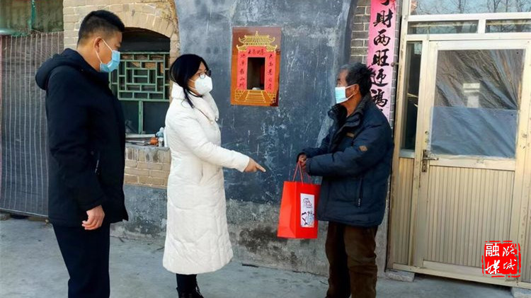 ★12月28日,成家川街道相关负责人在申家村给困难党员发放防疫物资。