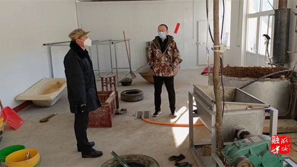 ★12月28日,辛安泉镇相关负责人在古城村查看红薯粉条加工项目施工进度。