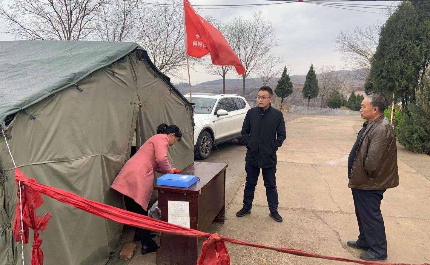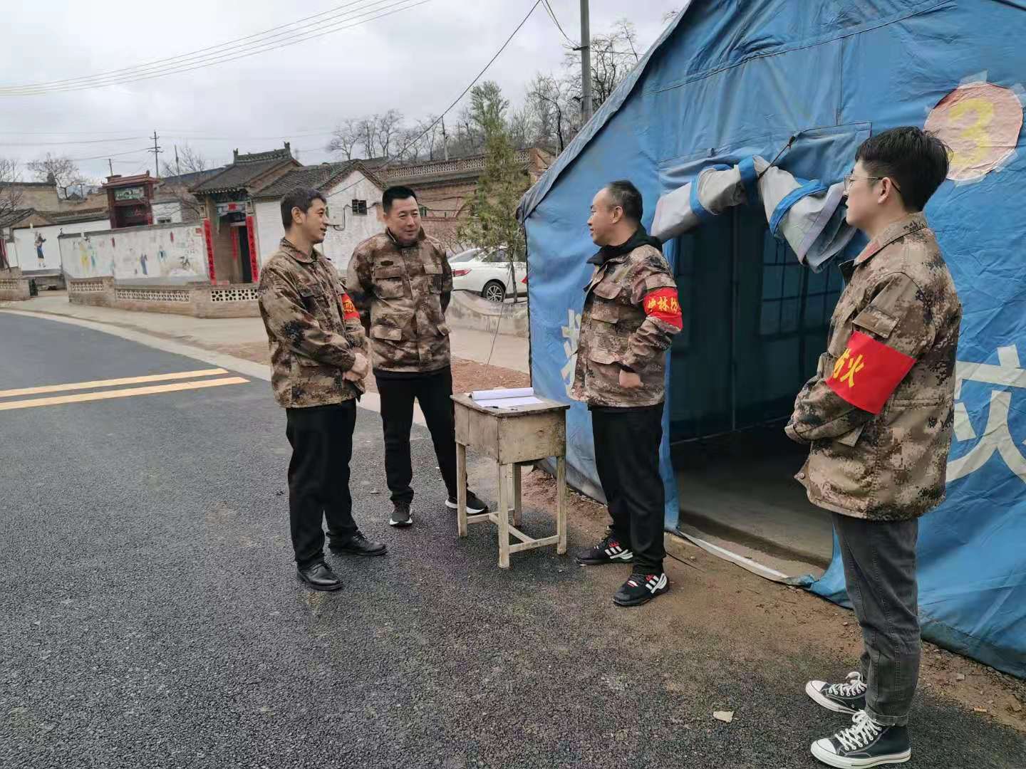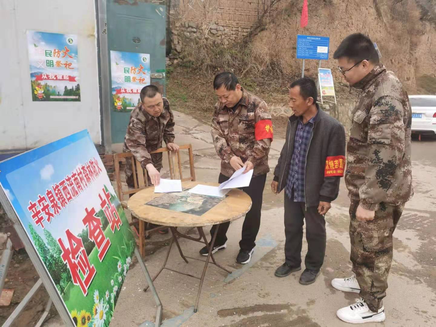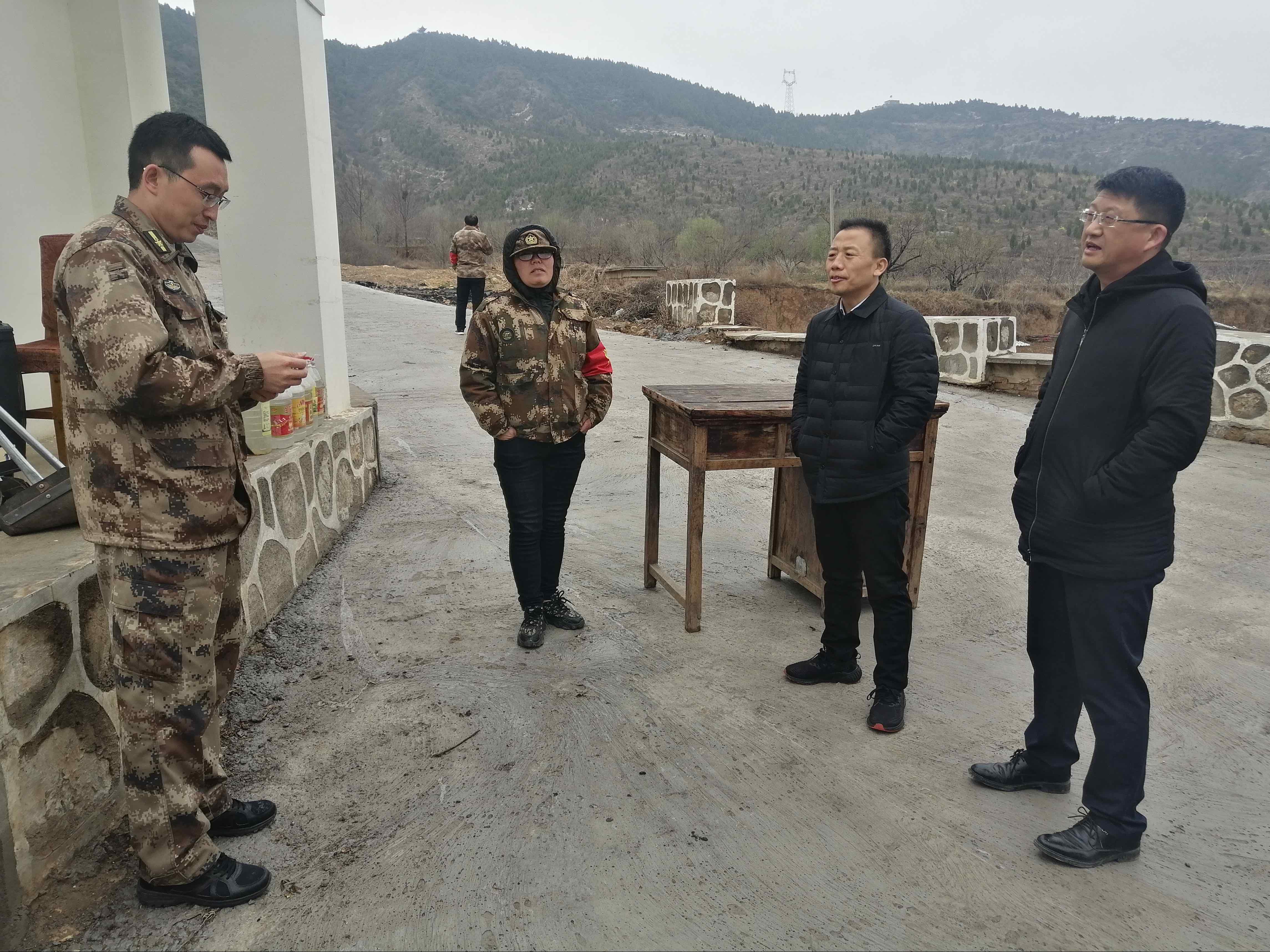 ▲4月3日,翟店街道负责人带队检查各护林防火卡口人员值守情况。