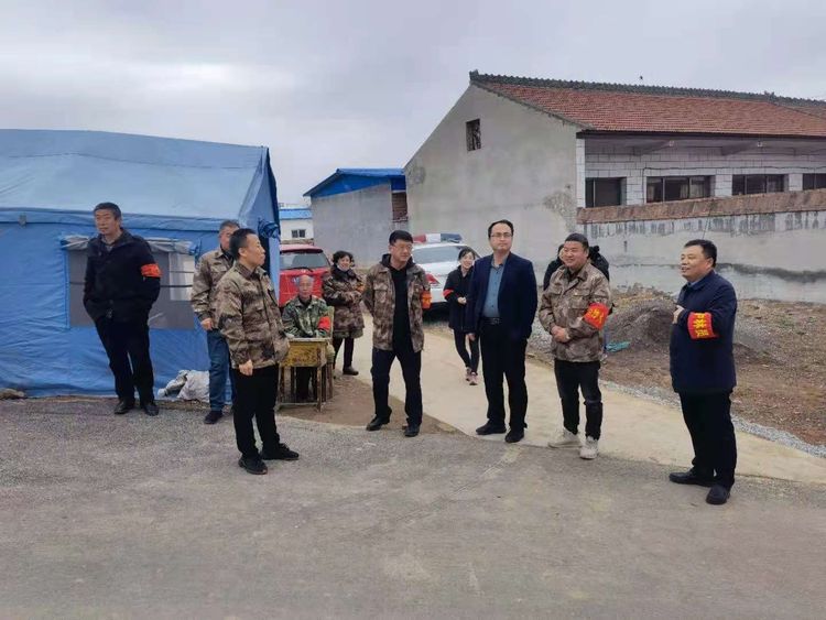 ▲4月5日,翟店镇相关负责人检查重点卡口和各村值班人员在岗值守情况。