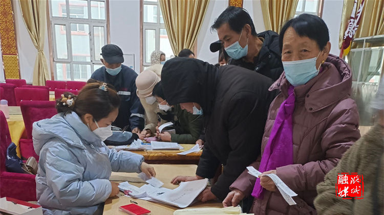 ★1月12日,店上镇各村工作人员为村民发放集体分红、慰问品等年终福利,共享村集体经济发展红利。