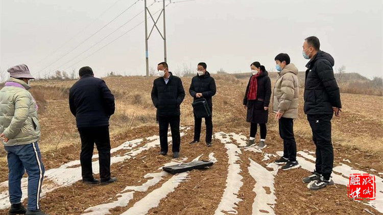 ★1月13日,微子镇相关负责人陪同区农业局工作人员在神头村勘测谷物种植面积。