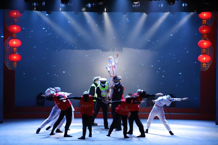 晚会结束后,段尧刚、柴哲、翟勇等区领导走上舞台同演职人员合影留念,并看望到场的道德模范。