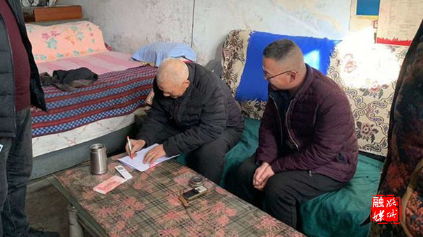 ▲店上镇相关负责人到枣臻村入户走访慰问困难老党员,并送上慰问金。
