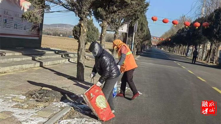 ▲店上镇河湃村组织工作人员对村内垃圾进行清理,持续推进环境卫生整治工作。
