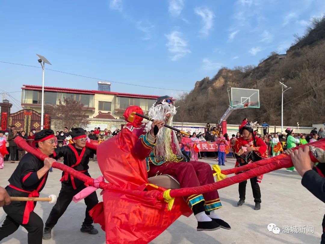 场场活动欢乐多,其乐融融闹元宵。那边灯光璀璨夜空,这边表演热闹非凡。今年,翟店街道寨上村这个传统古村落彻底“火”了一把,在这里举办的首届寨上民俗文化艺术节,传统民俗活动轮番上演,全村男女老少齐上阵……吸引了众多群众及游客前来观看,一同感受这浓浓的年味,开启了传统文化盛宴。翟店街道寨上村党支部书记、村委会主任王海明介绍:“此次文化艺术节从大年初一持续到正月十五元宵节,在此期间,每天都有各类精彩的民俗文化节目展演,传承上党地区新年民俗,展现寨上村传统古村风貌,既有上党戏曲、鼓书、手工花灯、晃杠、秧歌、高跷、旱船、舞龙舞狮等民间艺术表演,也有射箭、投壶、骑马、秋千等传统的游戏项目,并且准备了滑索、悬空桥等游戏体验活动,同时,潞城甩饼、羊汤等各种小吃美食应有尽有。”在潞城大礼堂和摩坊金街外,连续数日的精品戏曲依次上演,优美的唱腔、传神的表情将戏剧人物和故事演绎得惟妙惟肖,让群众大饱眼福。在世纪广场,“潞通杯”2023年全民K歌大赛现场实力唱将一展歌喉,这场在家门口举行的K歌比赛让歌迷们无比满足。