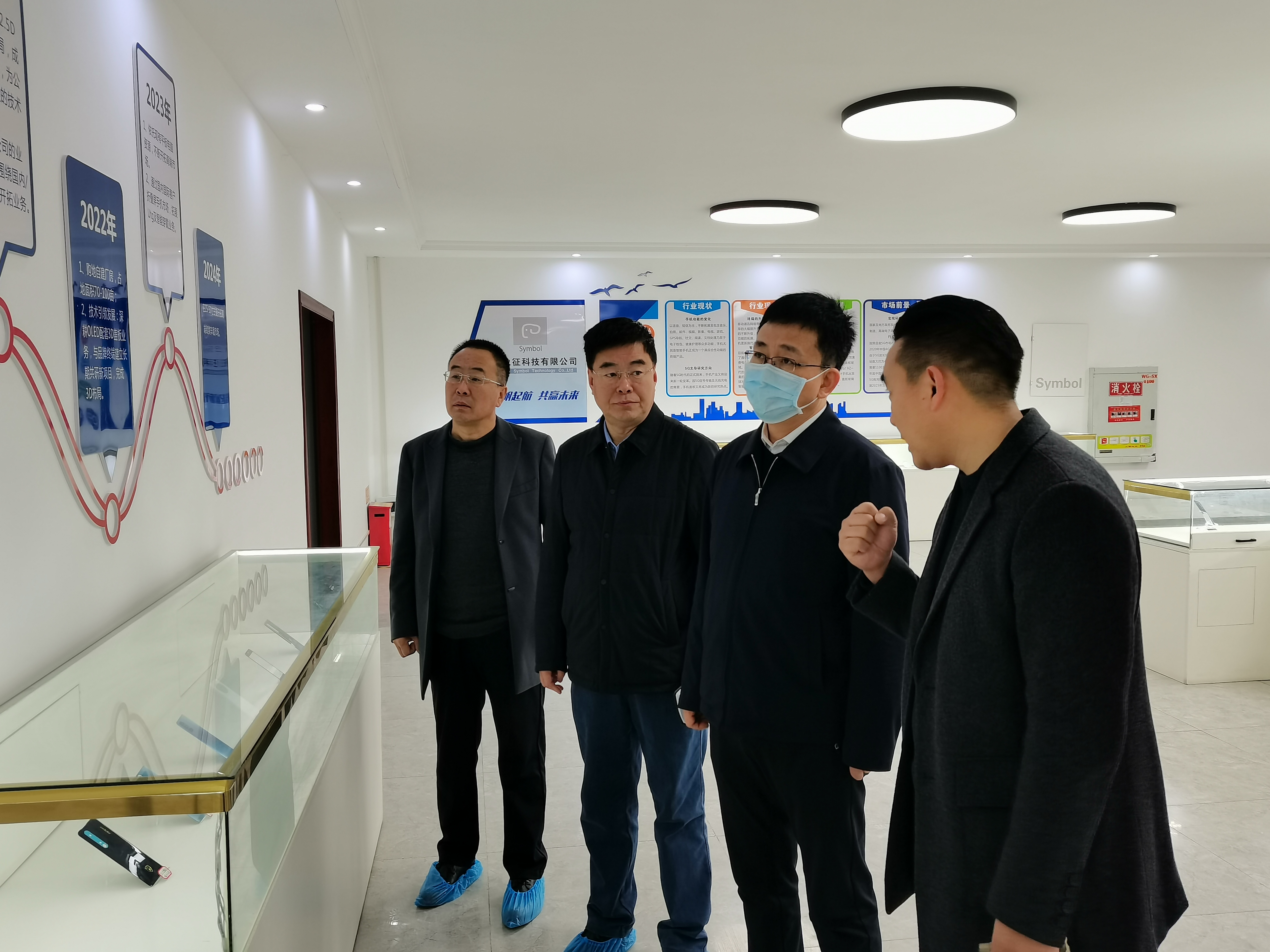 段尧刚一行深入重庆象征科技有限公司,详细了解企业产品的生产工艺流程,并与企业负责人就企业发展规划、投资布局、外扩意愿、电子信息产业发展方向等方面进行了深度交流。