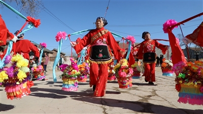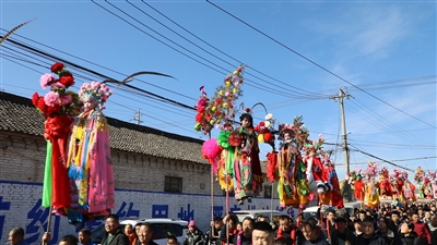 二月二到来时,成家川街道东邑村的年俗庙会也如期而至。庙会举行时,周边四里八乡的人们都会来赶庙会。尤其是在龙王庙经过修缮后,村里恢复了古老的二月二龙抬头祈福仪式之后,这里的庙会更加红火。社火表演,扛桩、皇杠、高跷、秧歌、舞蹈轮番上演,村中正街两边排满各种小摊贩,各种商品沿街叫卖,人声喧嚣,一片热闹的景象。