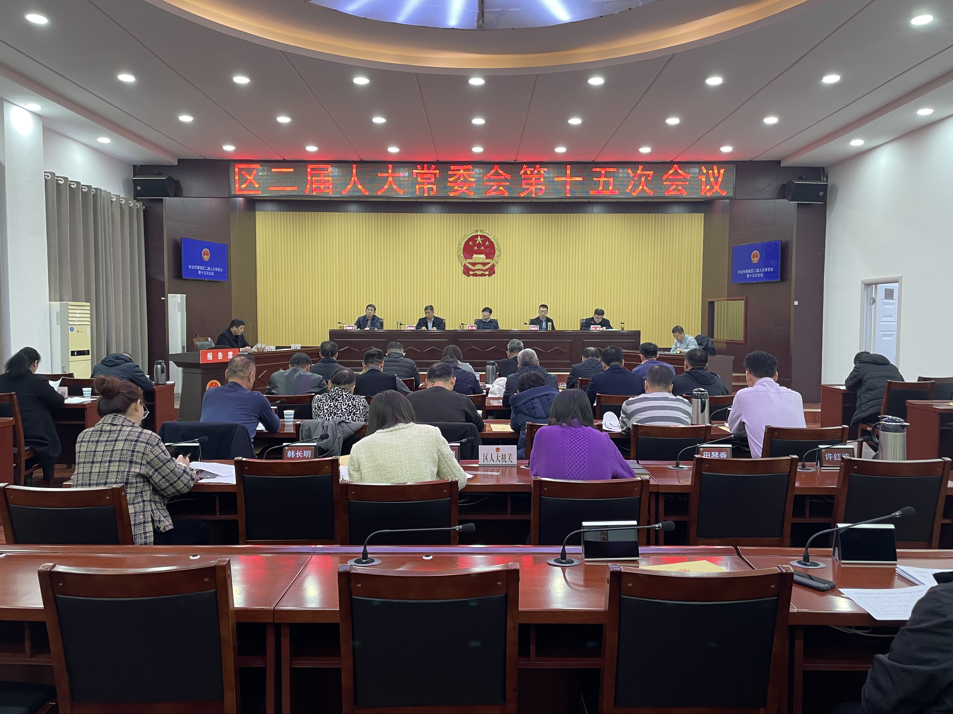 2月23日上午,区二届人大常委会第十五次会议召开。区人大常委会主任翟勇,副主任杨忠民、赵云斌、李敏、韩旭军出席会议。区委常委、常务副区长李明,区人民检察院代检察长陈优锋列席会议。李敏主持会议。