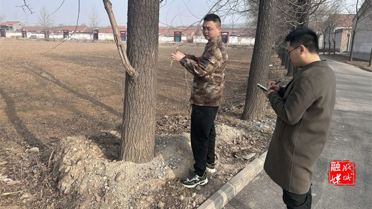 ▲潞华街道林业站工作人员到侯家庄村实地查看树木更新情况。