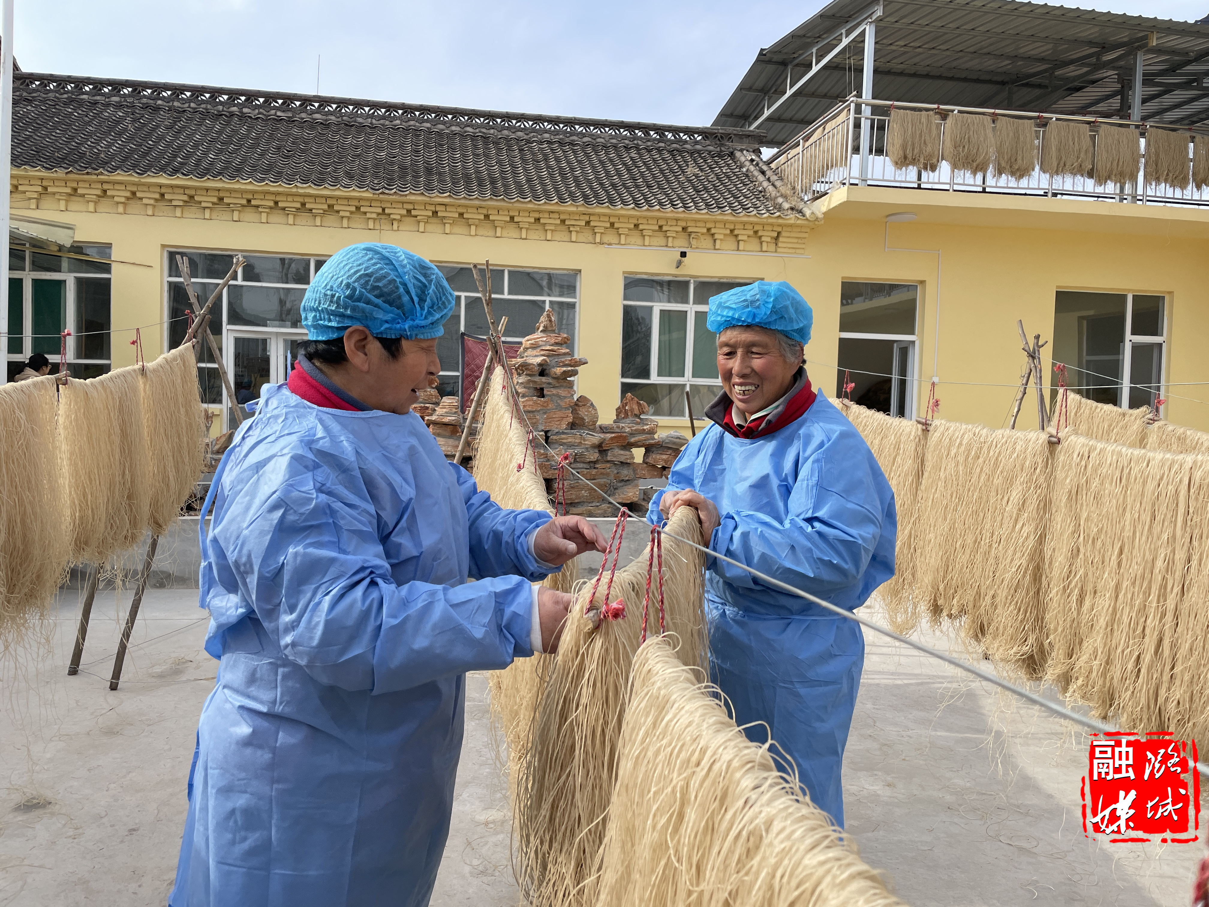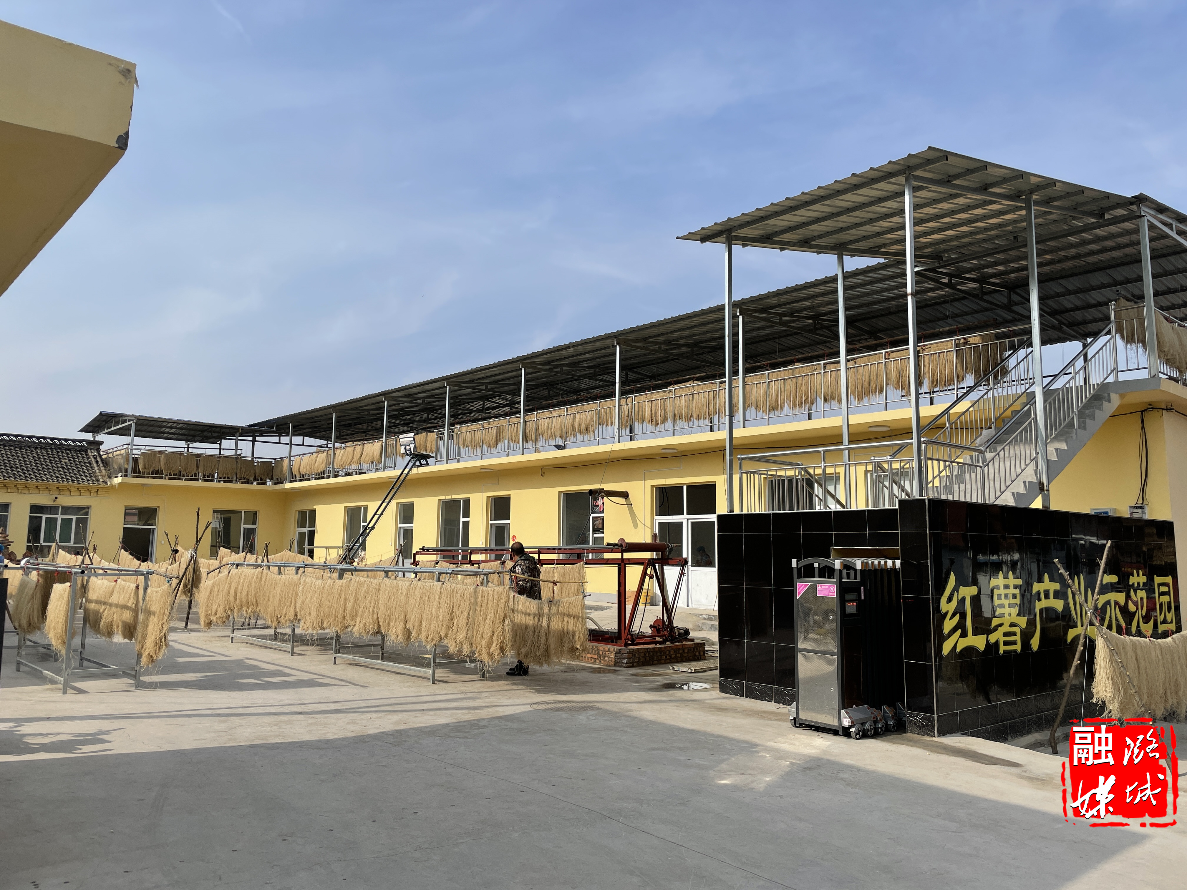 温暖的早春,阳光微弱但和煦。刚走进辛安泉镇古城村红薯产业示范园,就看到整个园子晾晒着的一片片刚刚做好的红薯粉条,在阳光的照耀下,愈发显得晶莹剔透。在红薯粉条制作间内,机器轰鸣、水汽缭绕,工人们正忙着将红薯粉装入机器搅拌,待红薯粉变成软硬适宜的红薯面后,再经过出条、开水滚煮、凉水降温,红薯粉条初具模样。“要想让红薯粉条品相顺直、筋道耐煮,还需要经过冰库冷冻、温水冲洗,这样制出的红薯粉条大家才愿意买、喜欢吃。”古城村党支部书记李向荣介绍,“传统粉条一般是在数九天做,现在我们建了冷库、加装了自动冲洗机,这样我们制作红薯粉条就摆脱了季节限制。”除此之外,古城村制作红薯粉条不掺杂任何添加剂,只用当地红薯为原料,保证制出的红薯粉条粉味纯正、绿色无公害。