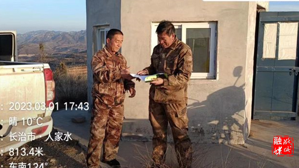 ▲成家川街道林业站工作人员到村开展护林防火巡查工作及督查护林员在岗情况。