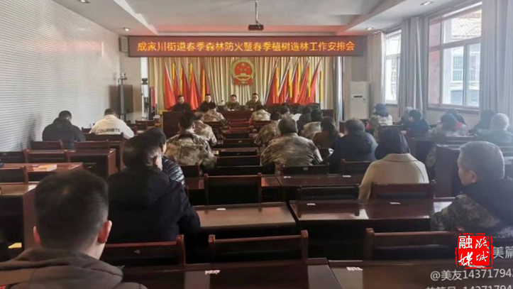 ▲成家川街道召开春季森林防火暨春季植树造林工作安排会。
