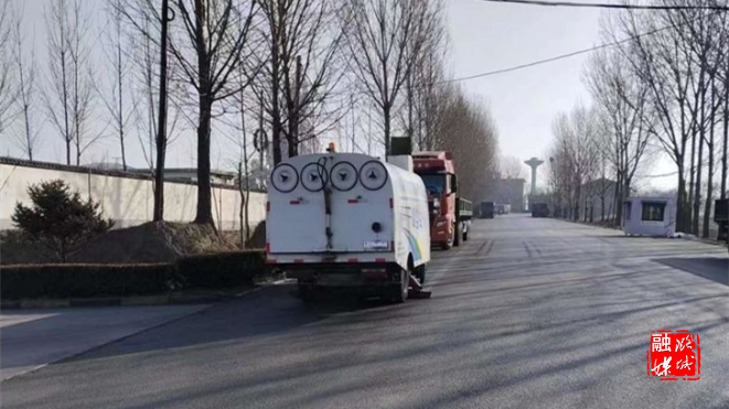★3月4日,史回镇辖区企业常态化进行路面清扫、洒水降尘,持续改善空气质量。