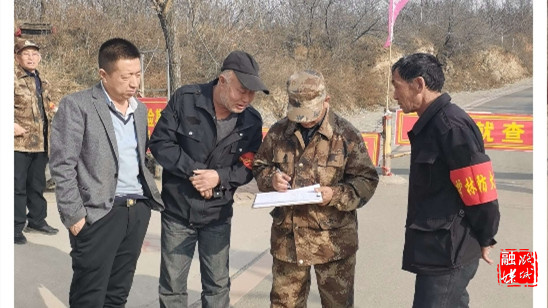 ▲辛安泉镇相关负责人在各村开展森林防火午间巡查工作。