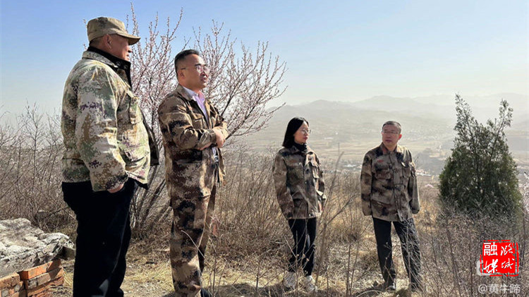 ▲成家川街道相关负责人到村督查护林防火工作。