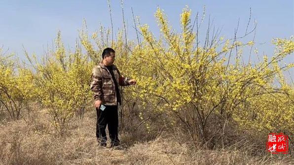 ★3月21日,辛安泉镇香菇按负责人在申家山查看连翘生长情况。