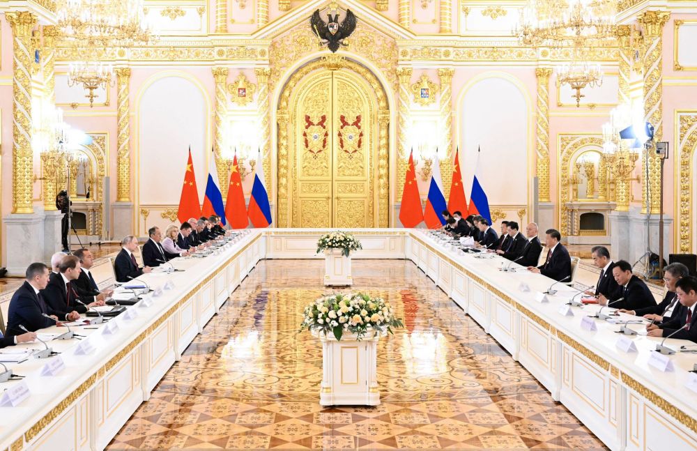 当地时间3月21日下午,国家主席习近平在莫斯科克里姆林宫同俄罗斯总统普京举行会谈。这是两国元首举行大范围会谈。
