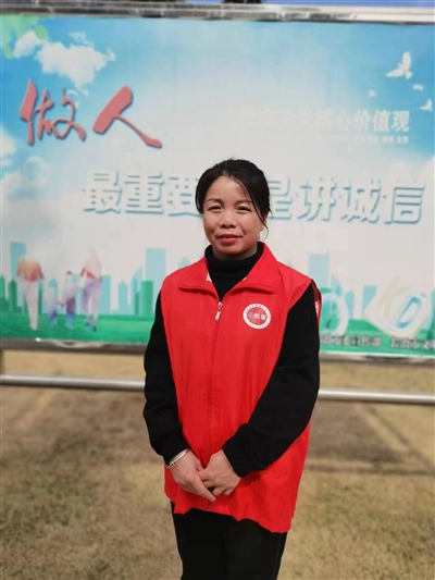 王玉香 区正能量公益协会志愿者。在文明城市创建中疏导交通、疫情防控中协助核酸采集、环境卫生整治中清扫垃圾,高考中考中贴心为考生、家长服务,炎热天气为环卫工人送清凉,春节前进社区义写春联。志愿服务她从不缺席。