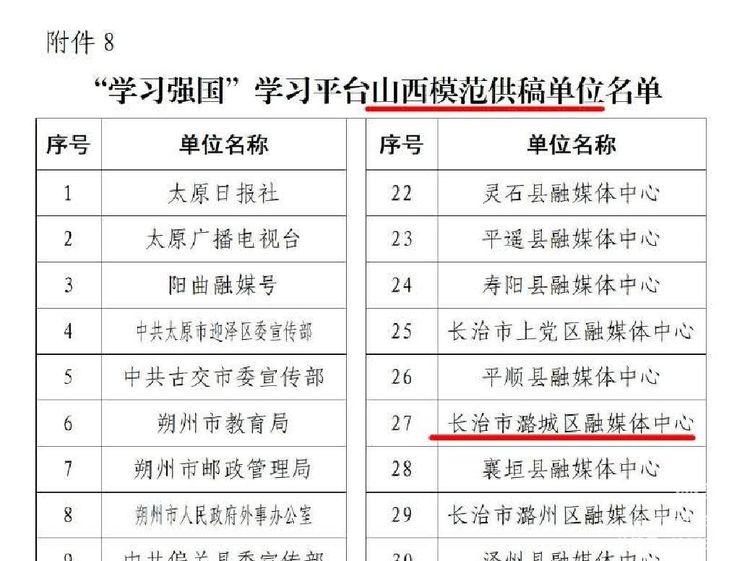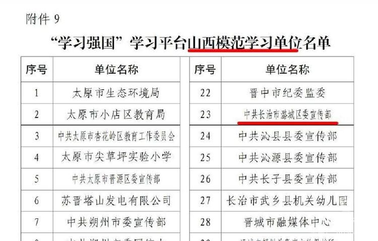被 “学习强国”山西学习平台通报表扬