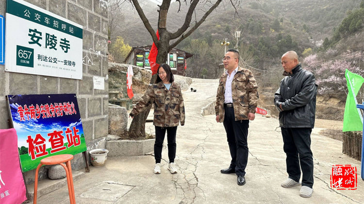 ▲辛安泉镇相关负责人带队开展森林防火早间巡查工作。