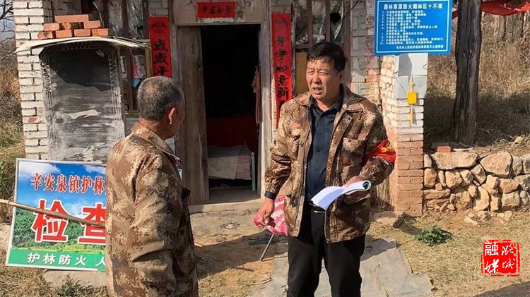 ▲辛安泉镇林业站工作人员在各村检查护林员值班值守情况,开展常态化森林防火巡查。
