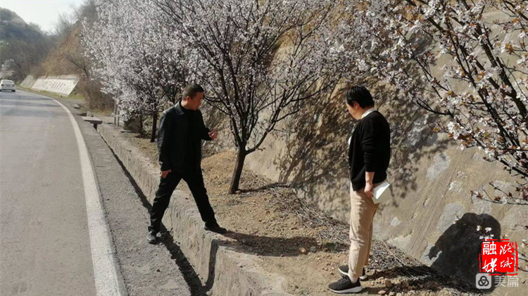 ★3月30日,黄牛蹄乡负责人在324省道沿线规划绿化美化工作。