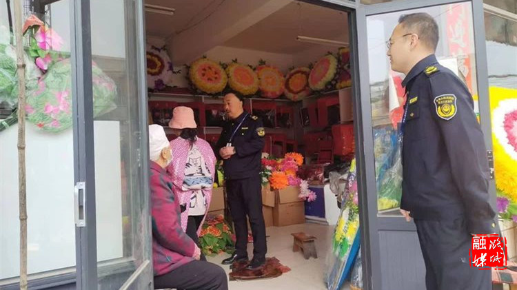 ▲微子镇相关负责人在镇区商铺就销售冥币及祭祀用品情况进行排查。