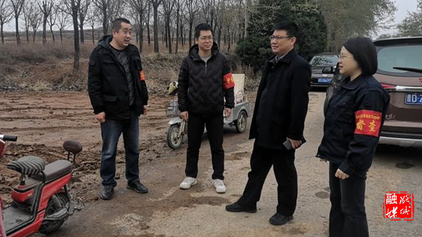 ▲翟店街道负责人到各村卡口督查护林防火值班值守情况。
