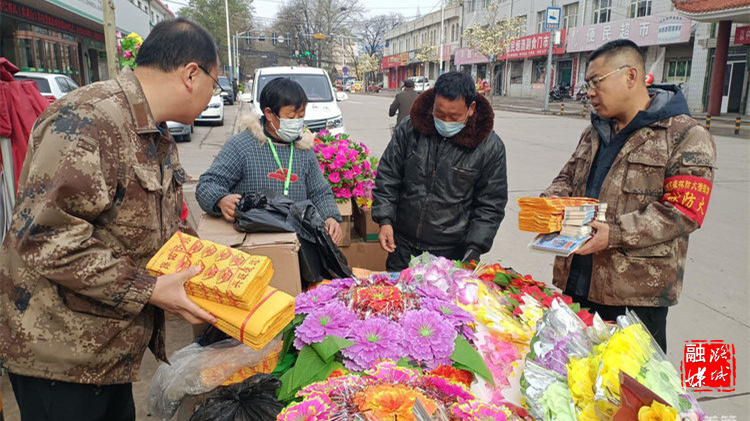 ▲成家川街道相关负责人在辖区商店、商贩,督查易燃祭祀用品售卖情况。
