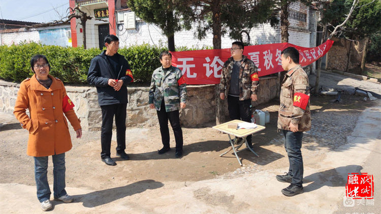 ▲翟店街道工作人员在村开展常态化护林防火巡查工作。