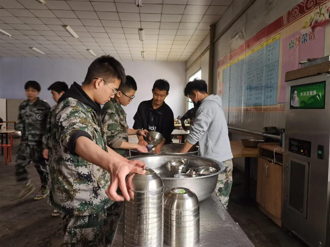 这所学校最大的特色,就是实行“准军事化管理”。走进位于长治市郊的校园,教室外墙都涂着迷彩色,学生们都身穿迷彩服,宿舍内务也像军营,床铺平平展展,被子叠得像豆腐块。在这里,学生们早上要出操,饭前集合唱歌,晚上准时熄灯,消费只能用卡,每天设40元最高消费。