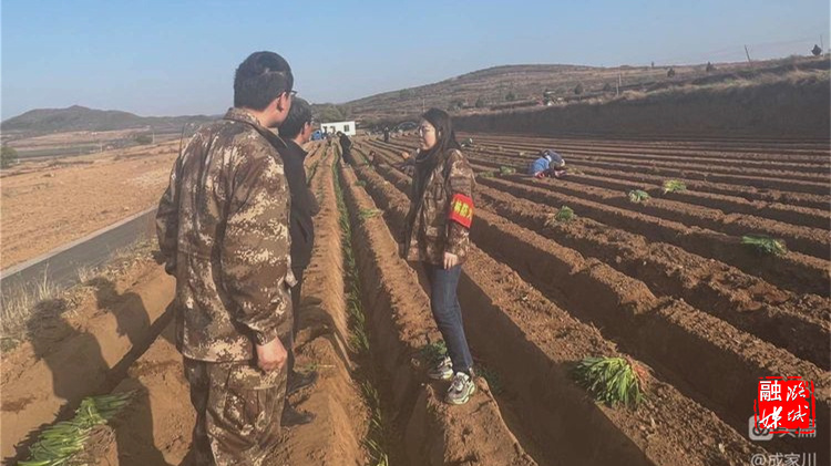 ★4月8日,成家川街道相关负责人在台东村查看大葱种植情况。