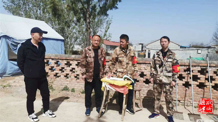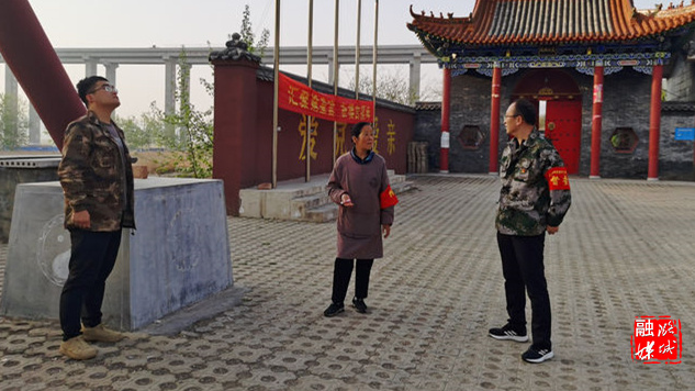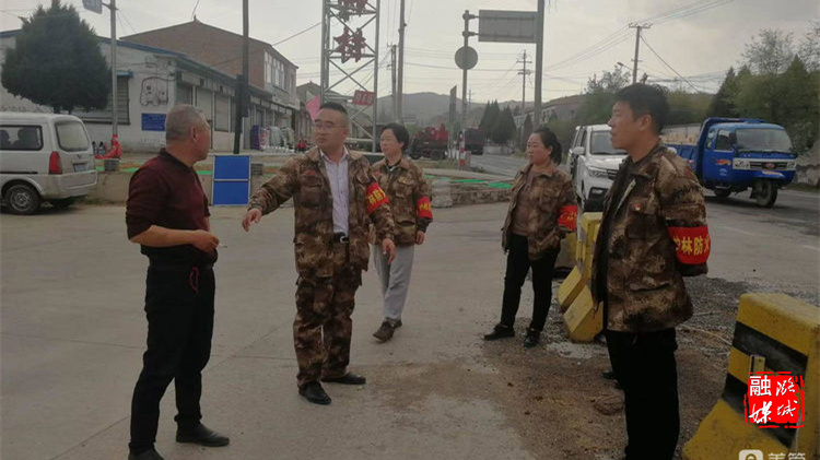 ▲成家川街道相关负责人在郭家庄村督查护林防火人员值班值守情况。